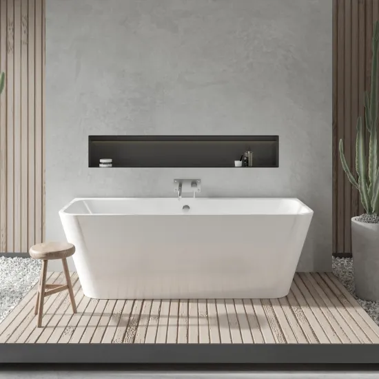 British Baths Coxwold Square Freestanding Back to Wall White Acrylic Bath 1700 x 735