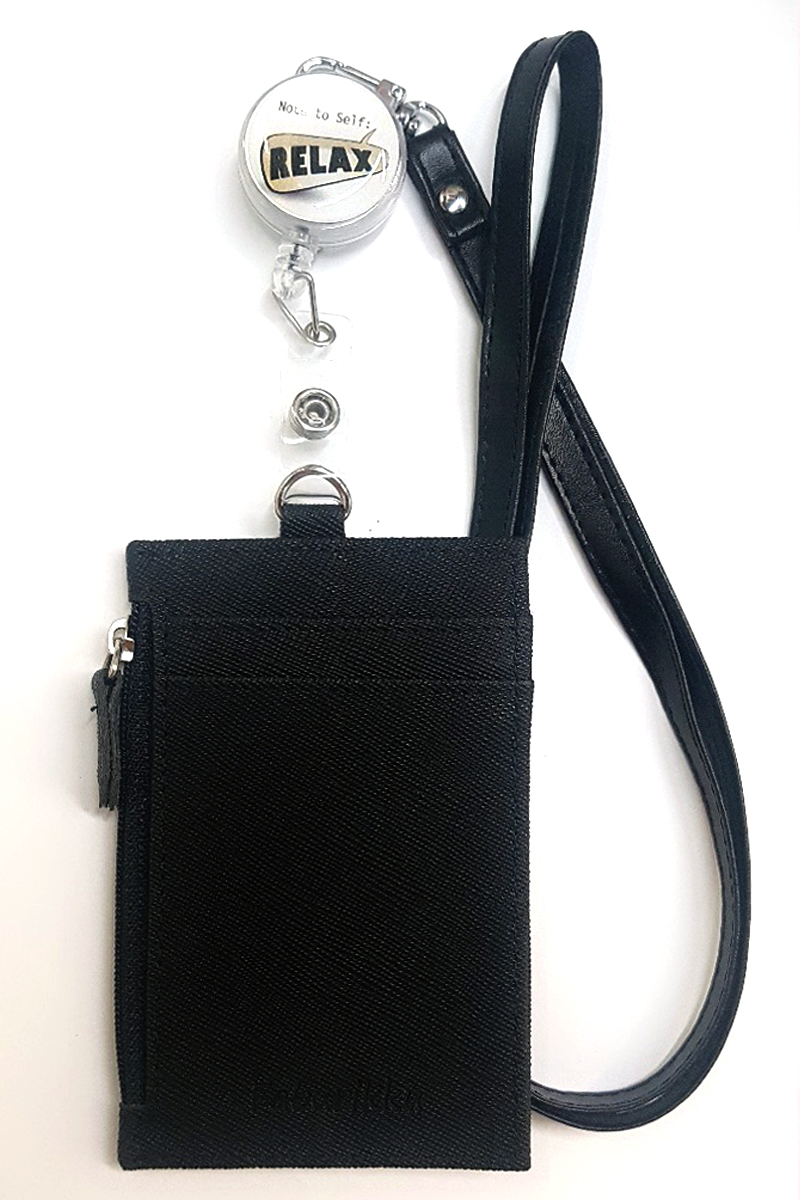 Note To Relax Badge Reel with Black Zip Cardholder and Lanyard Set
