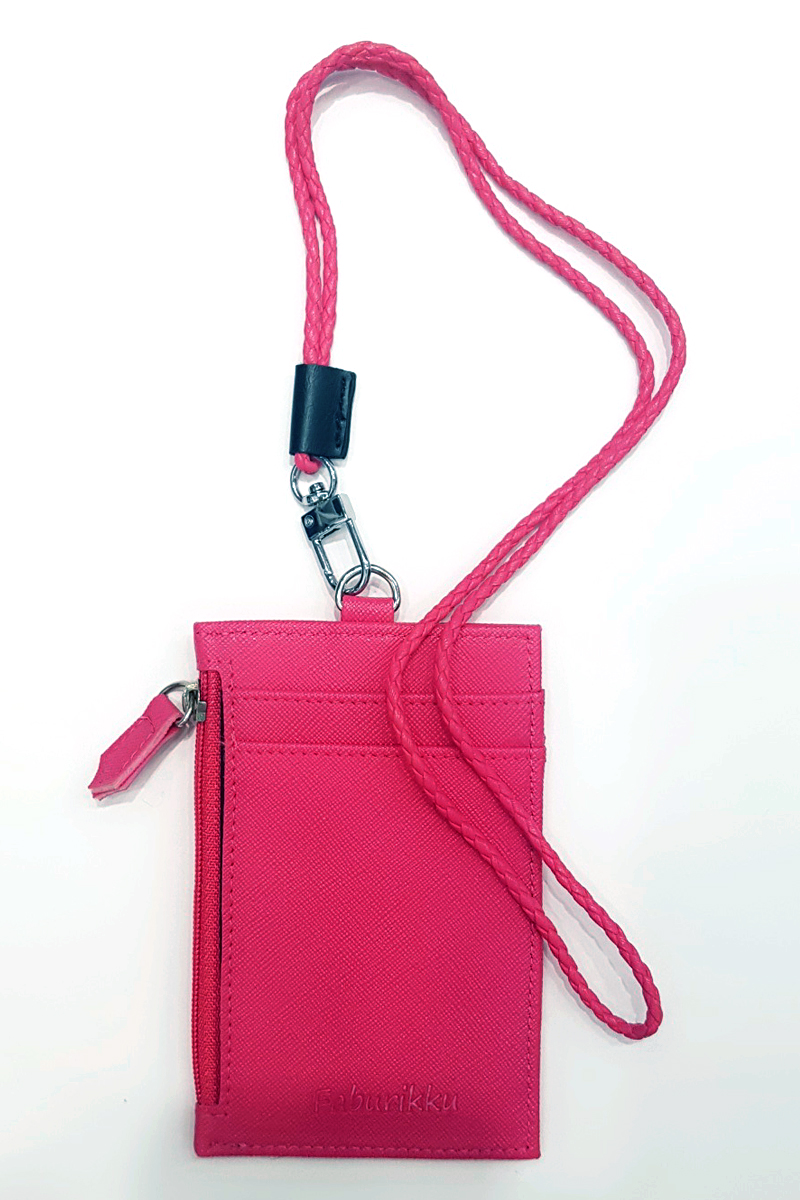 Dark Pink Zip Cardholder With Lanyard Set